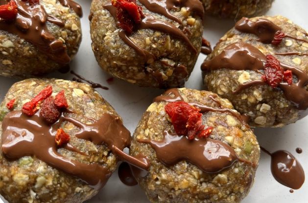 What’s better than cookies at Christmas? Lauren’s ginger and caramel cookies! They’re full of flavour, quick to make, and don’t need cooking. And they’re so easy even the kids can get involved. Fun! Ingredients: Optional toppings: melted white or dark chocolate, chopped dried berries, crushed pistachios or pumpkin seeds. Method: