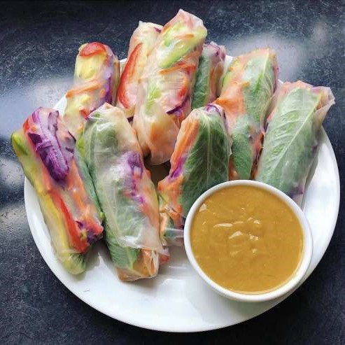Rice paper rolls with peanut dipping sauce